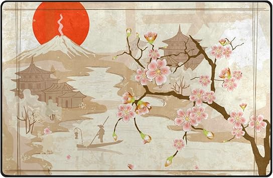 Amazon Com Wozo Japanese Fisherman Sun Cherry Blossom Area Rug
