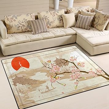 Area Rug Japanese Cherry Blossom Fuji Mountain Living Room Floor